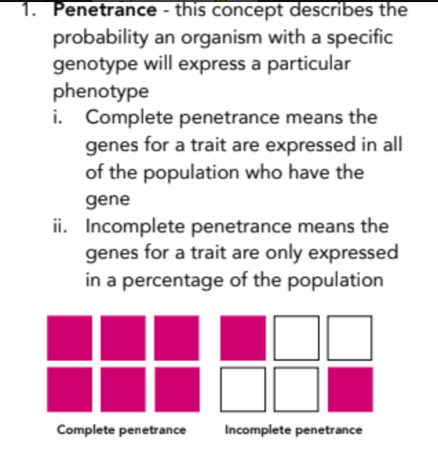 incomplete: genes for a trait are only expressed in a percentage of the population