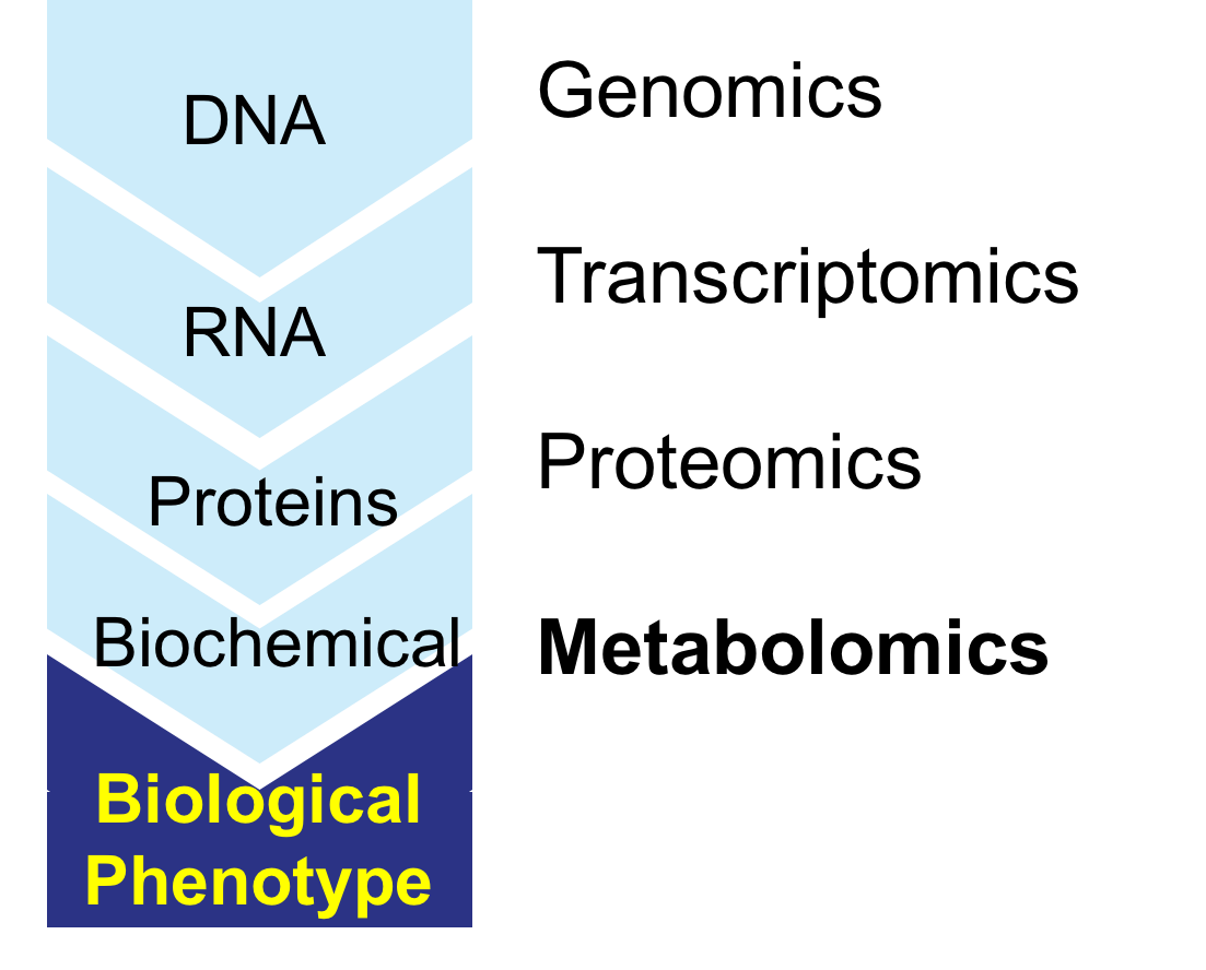 Metabolomics - study of the complete set of low molecular weight compounds in a sample. These compounds are substrates and by products of enzymatic reactions and have a direct effect on the phenotype of the cell.