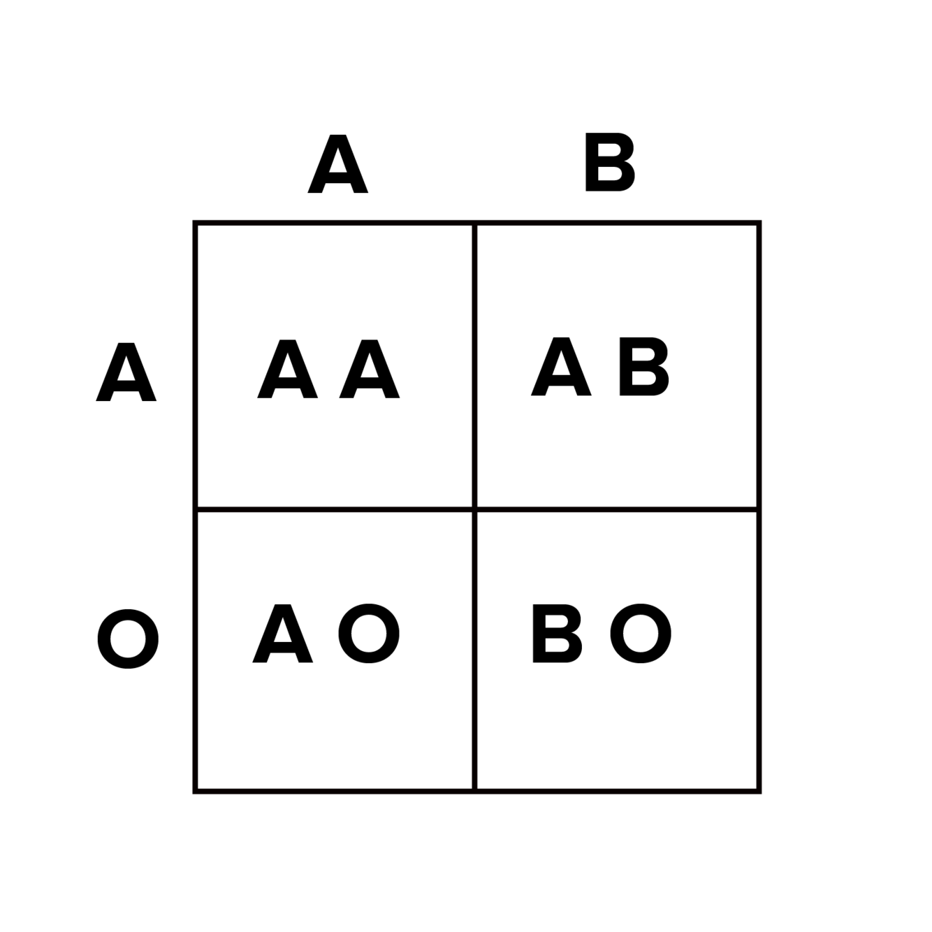 First, note that the A and B alleles are both dominant over O. Heterozygous individuals with type A blood have a genotype of AO, with A being dominant over O. Therefore, the woman in this question must have an AO genotype. The cross described in this question is pictured below. The child has a 50% chance of being either AA or AB (two dominant alleles), leaving a 50% probability of either AO or BO (one dominant and one recessive allele).
