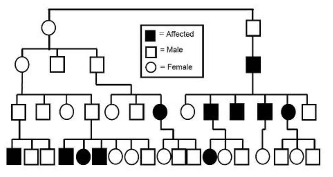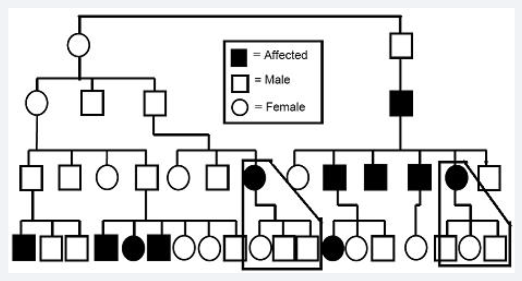 X-linked Recessive = Affected sons from affected mothers.