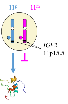 maternal allele is imprinted (shut down) - not transcribed or translated into protein - this is to stop too much IGF2 being produced so cell does not grow out of control