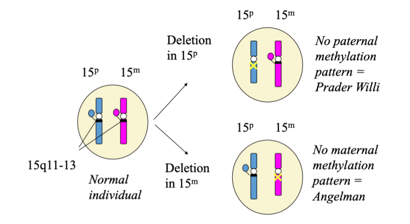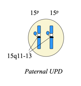 both associated with a de novo deletion on long arm of chr 15 (15q11-q13)