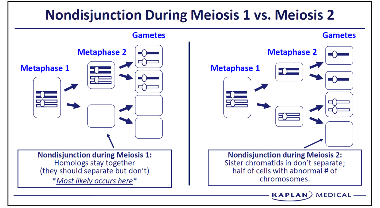 (incorrect separation of chromosomes during meiosis)