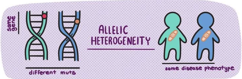 “allelic heterogeneity” describes when different mutations within the same gene (at the same locus) produce a similar phenotype