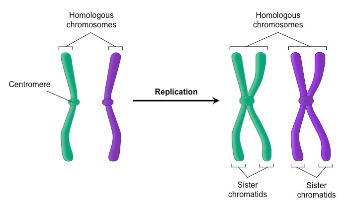 These are identical copies of a single chromosome, formed during DNA replication. They are joined at the centromere and contain the same genes and alleles. Sister chromatids are found in a single chromosome prior to cell division and remain together until they are separated during mitosis or meiosis.