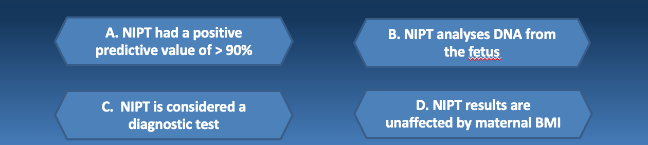 A pregnant women receives a high risk trisomy screening result and opts to have secondary screening via Non Invasive Prenatal Testing (NIPT). Identify the correct statement….