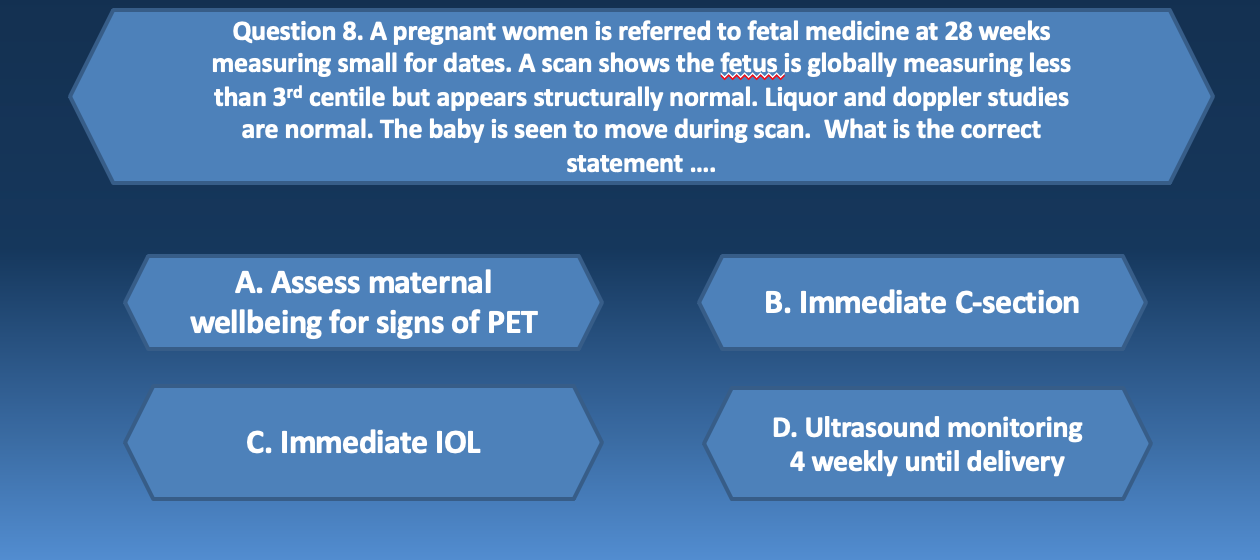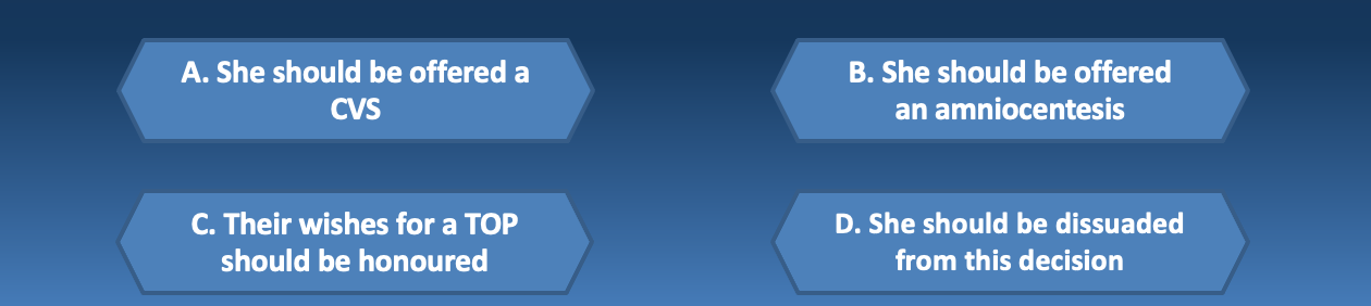A pregnant women has a high risk NIPT screening result for trisomy 18 at 12 weeks gestation. She and her partner want to end this pregnancy as soon as possible due to the severity of this condition. Choose the correct statement…