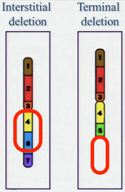 Deletion. There can be interstitial and terminal deletions.
