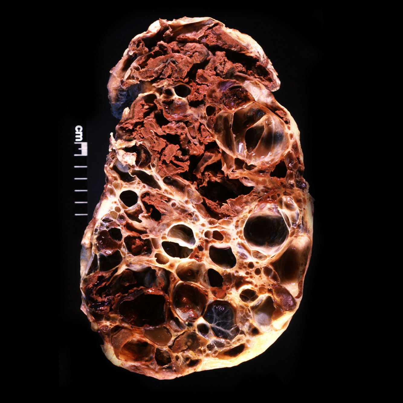Multiple bilateral variably sized renal cortical and medul-