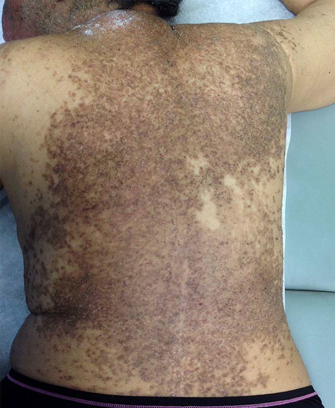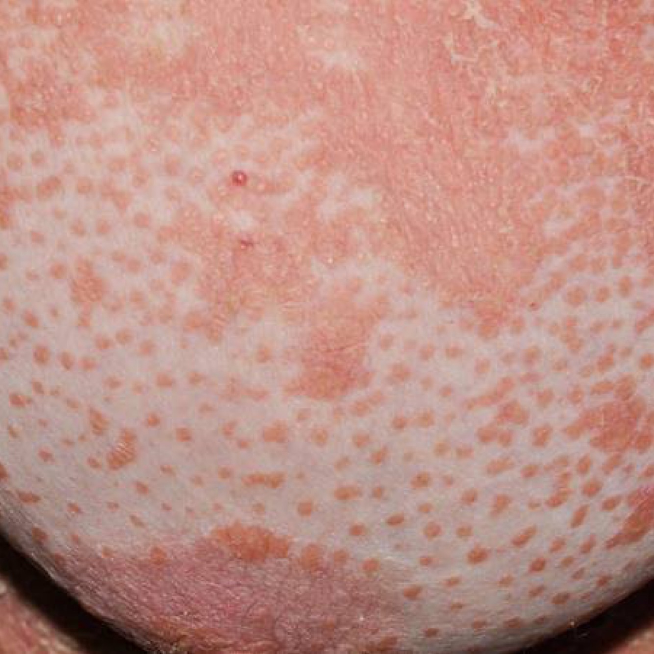 Acomete palmoplantar inicialmente, depois via pra tronco e membros