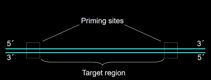 How is the region you want to amplify defined in PCR?
