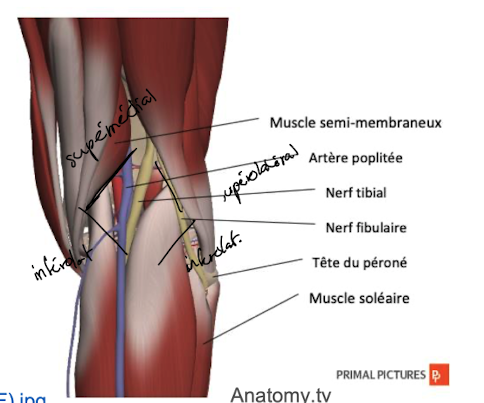 Artère poplitée en médial (la plus profonde)