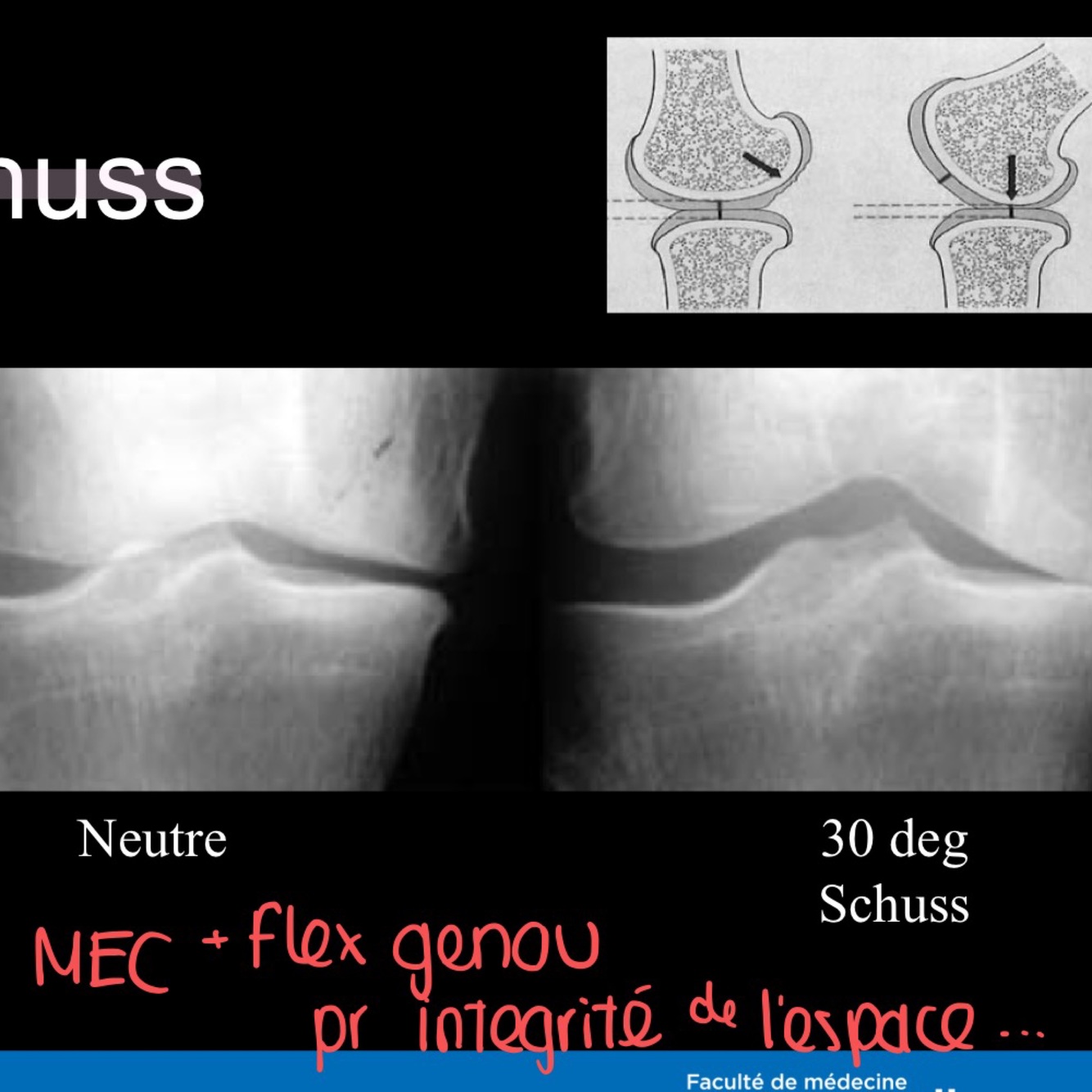 Si je veux une vue de plus pour voir l’intégrité des espaces des compartiments interne et externe femoro-tibiaux ?