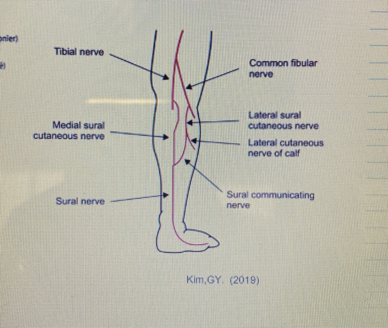 V OU F, les deux branches du nerf sural originent du nerf tibial et fibulaire