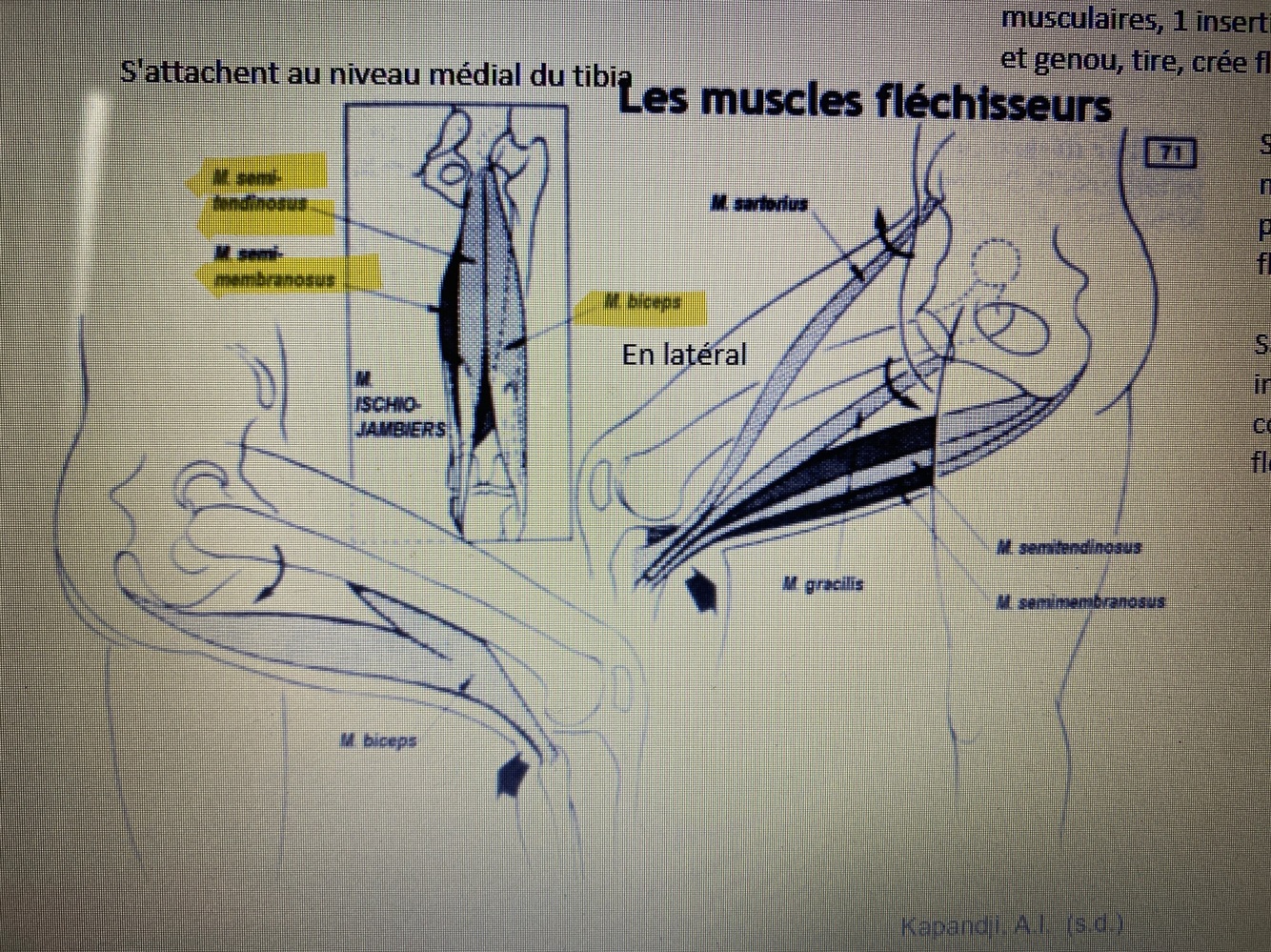 Les semi-tendineux et semi-membraneux sont postérieurs, lorsqu’ils se contractent, ils causent