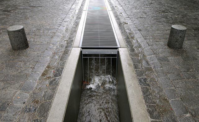 war früher ein offener Graben, heute ist er durch ein Gitter bedeckt