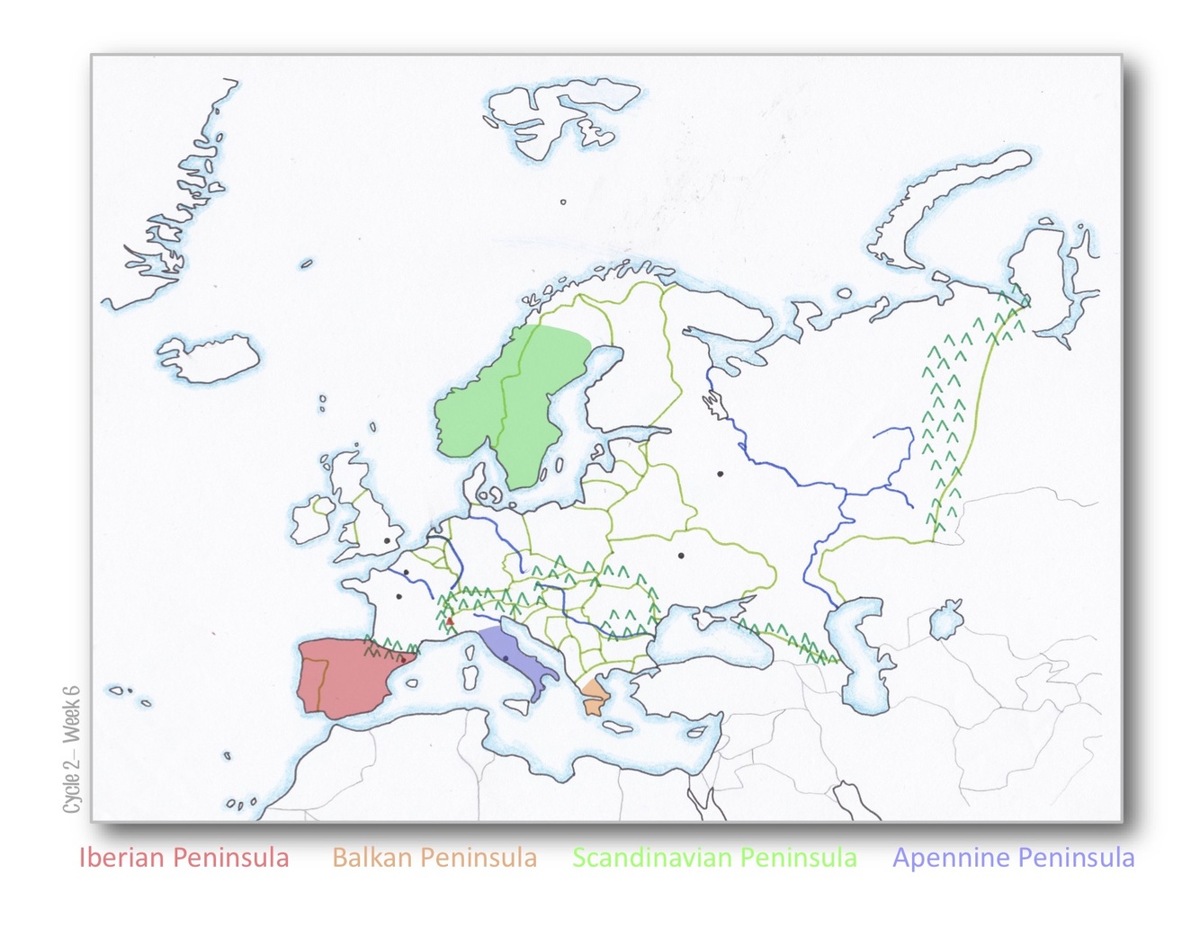 What are the European Peninsulas? (week 7)
