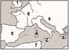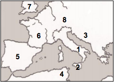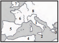 The island of Sicily is on the map in the area numbered