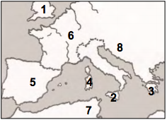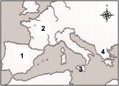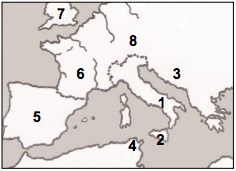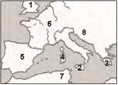 Graecia is on the map in the area numbered