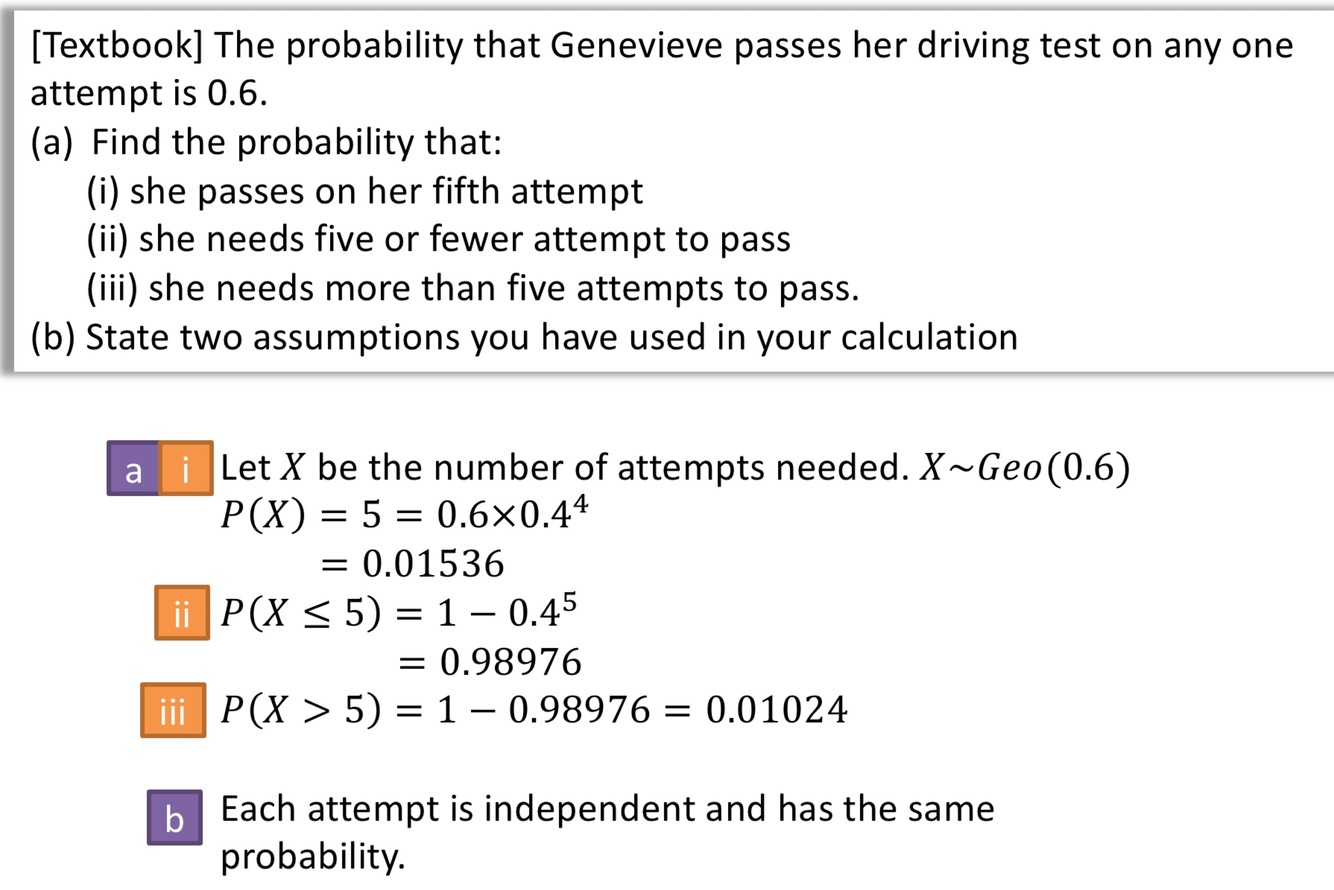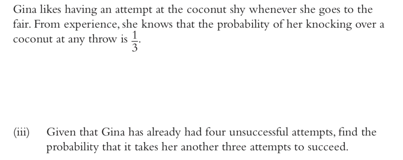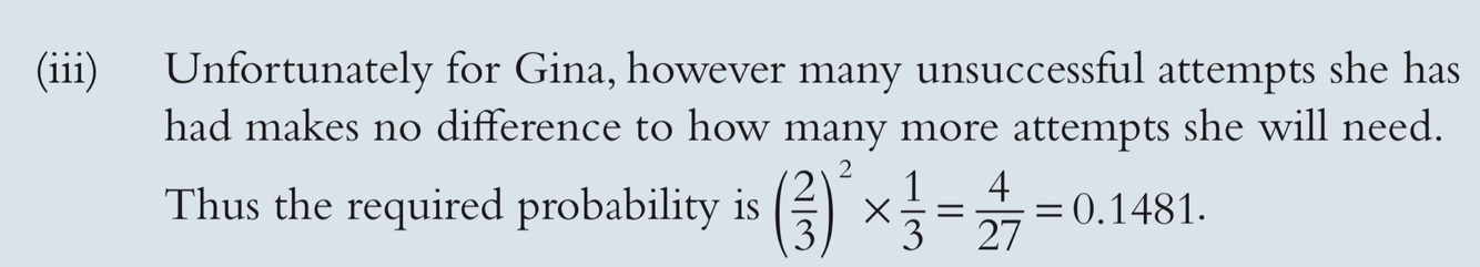 Previous attempts are not accounted for as geometric distribution has “no memory “