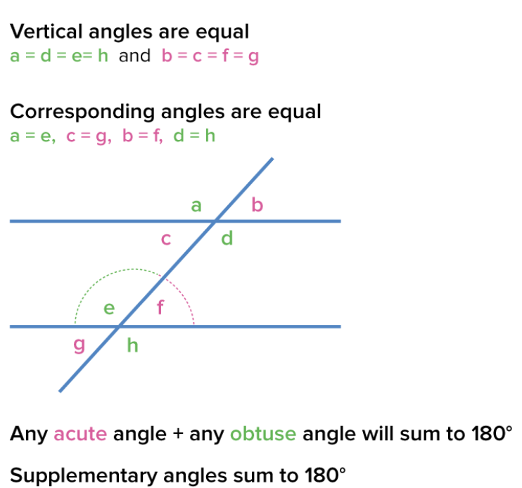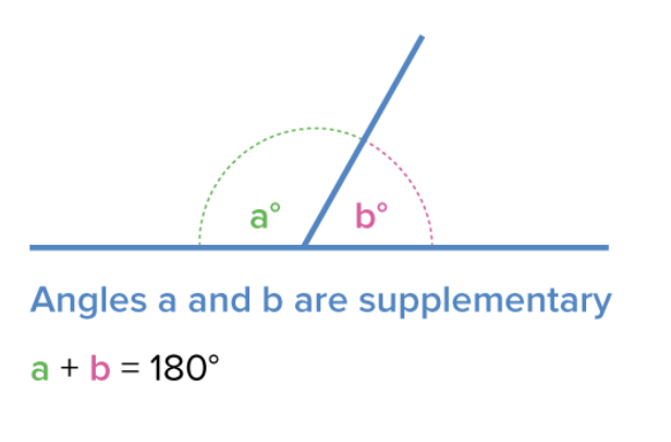 Angles are supplementary if their measures sum to 180°