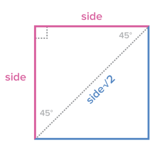 A square’s diagonal cuts the square into two 45-45-90 right triangles