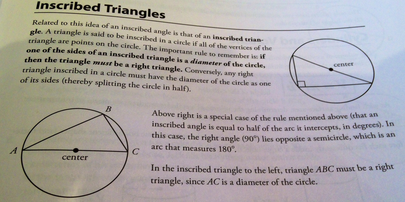 What is an Inscribed Triangle and what is the rule for if one side of an inscribed triangle is a diameter of the circle?