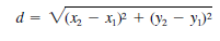 The distance between the points P1(x1,y1) and P2(x2,y2) is