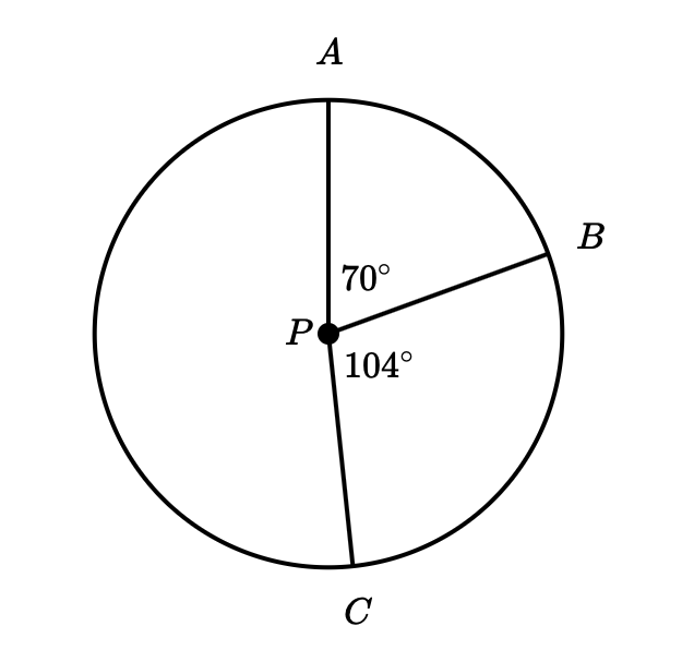 What is the Arc Measure, in degrees, of arc (AC) on circle P below?