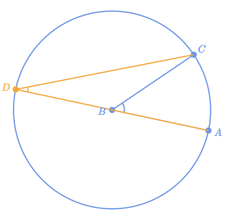 If angle “ADC” measures 23º, what does angle “ABC” measure?