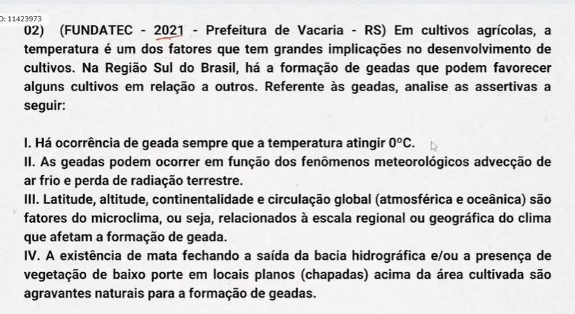 “Os fatores que influenciam a ocorrência de geadas são apenas latitude, umidade e relevo.”