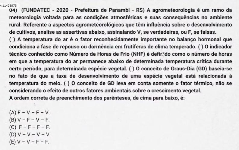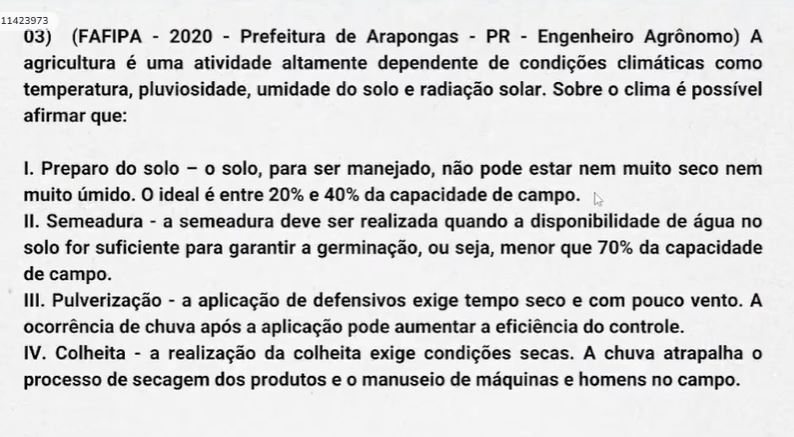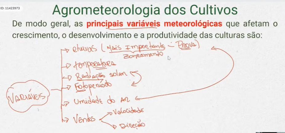 “Afetam o crescimento, o desenvolvimento e a produtividade das culturas apenas as variáveis meteorológicas: umidade, temperatura e radiação solar.”