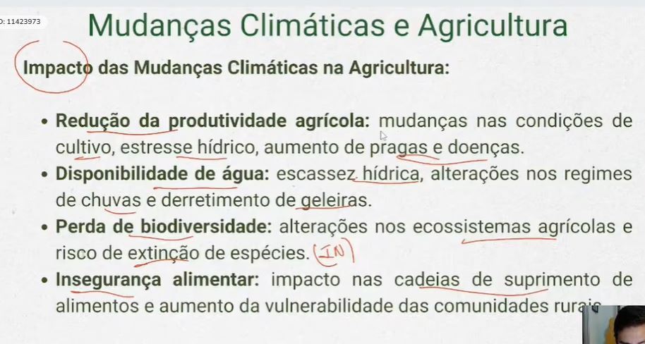 “Os principais efeitos das mudanças climáticas na agricultura são: redução da produtividade, alteração no regime de chuvas, extinção de espécies e aumento da vulnerabilidade dos agricultores e comunidades rurais. “