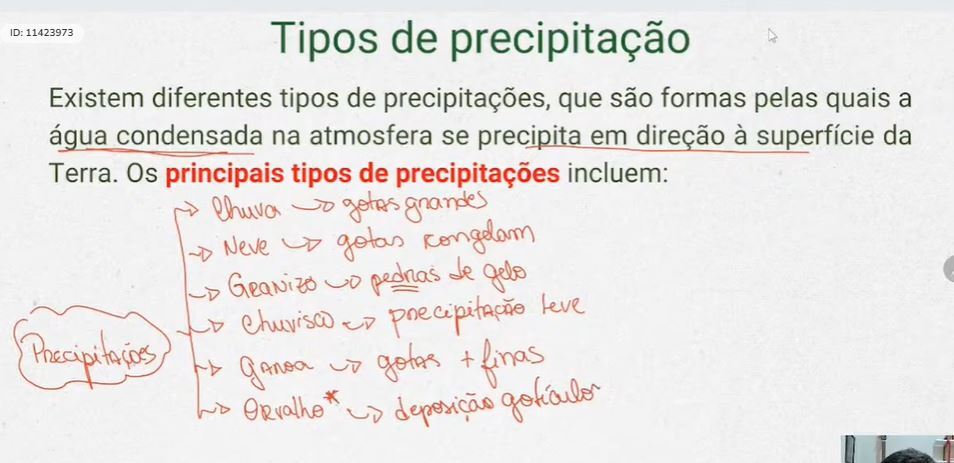 “Chuva, neve, orvalho e garoa são considerados tipos de precipitações.”