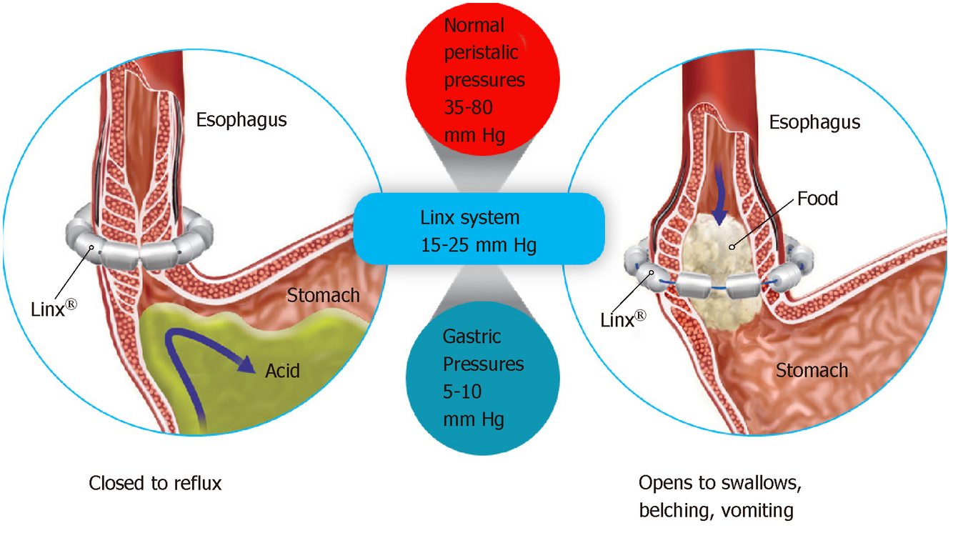 The LINX® Reflux (GERD) Management System (Magnetic sphinnter augmentation) consists of tiny magnetic titanium beads that are placed, through minimally invasive laparoscopic surgery, around the area where your stomach and esophagus meet.