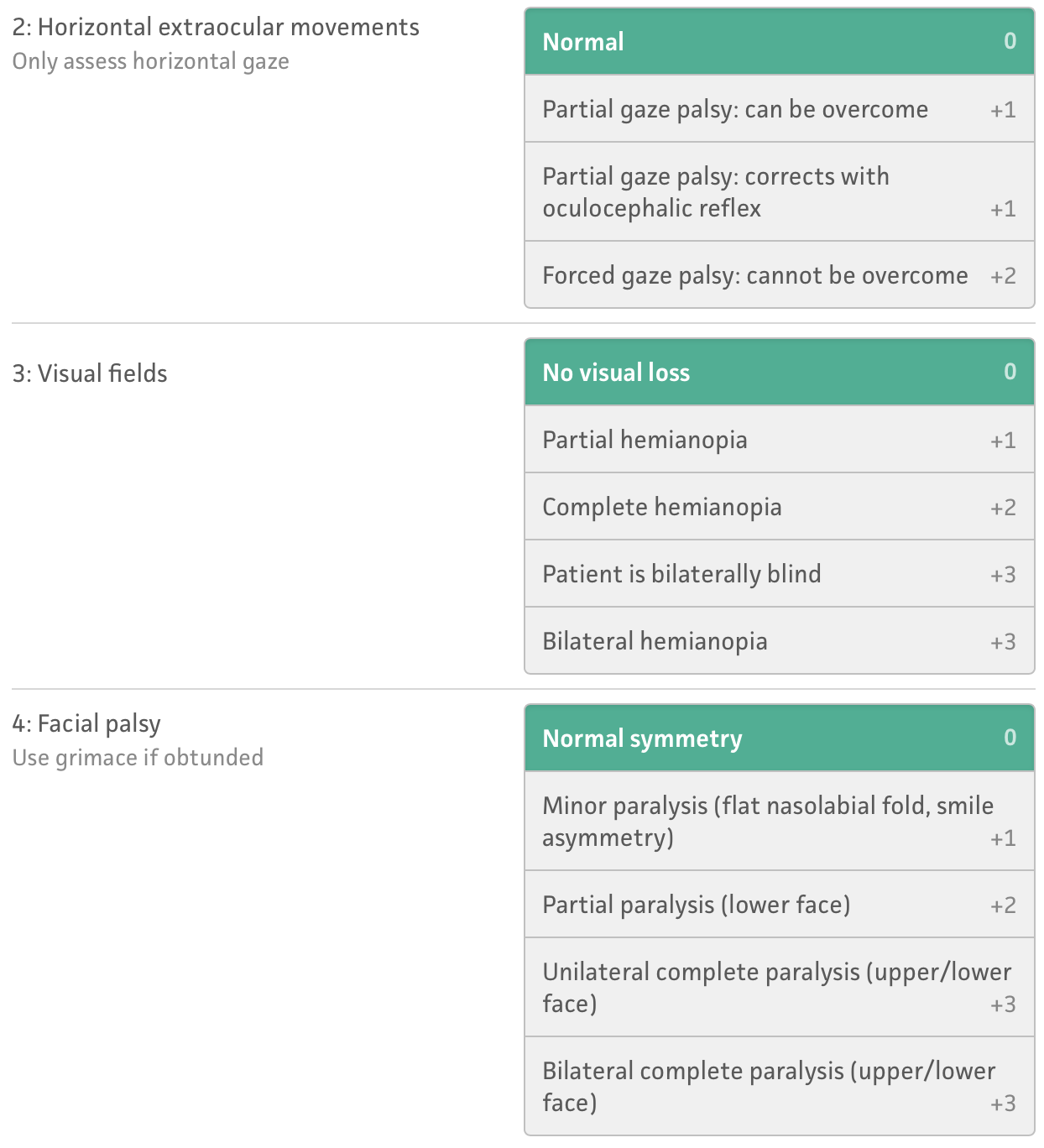Few assessment tools are used for the rapid assessment of a patient presenting with a suspected stroke. These include: