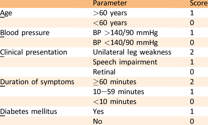 The ABCD2 score is a risk assessment tool designed to improve the prediction of short-term risk of a stroke after a transient ischemic attack (TIA). It is not a diagnostic tool.