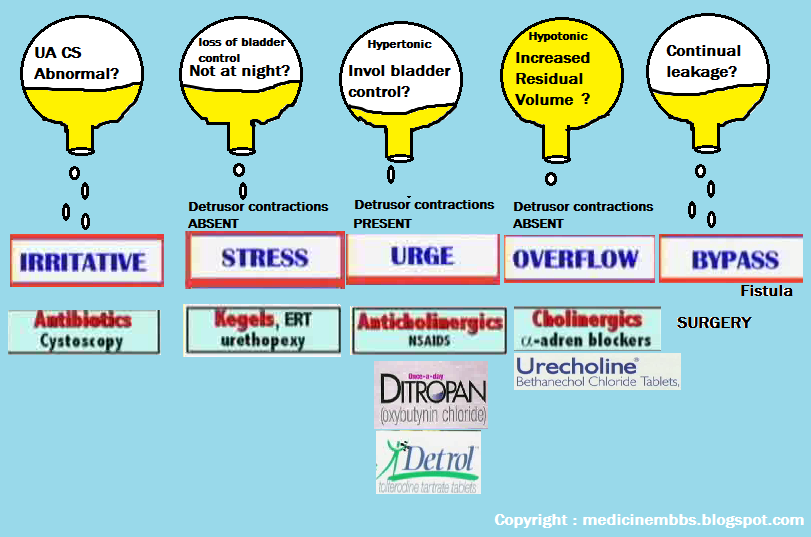 When non pharmacological measures have been exhausted then pharmacological measures can be trialled. Remember that anticholinergics are not good in older people and oxybutynin whilst good for younger patients is not good for older people. Many of the drugs used for bladder stabilisation can also cause postural hypotension leading to increased falls.