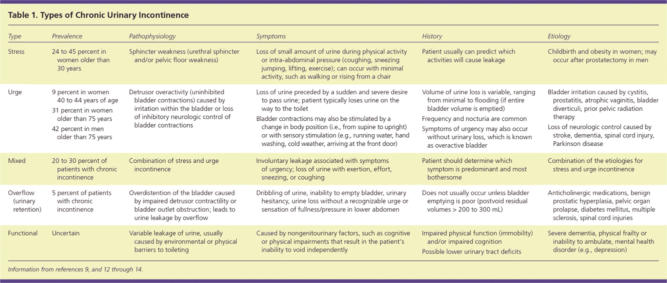 types of incontinence?