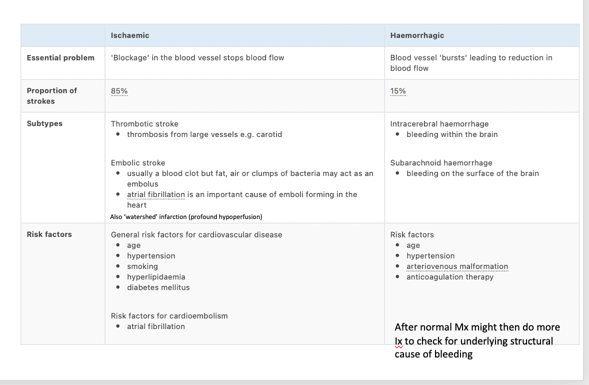 Ischaemi vs haemorrhagic stroke