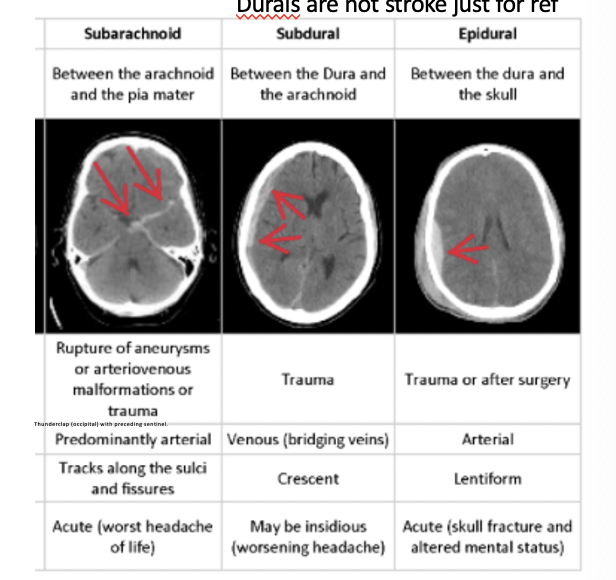 Subarachnoid vs subdural vs epidural on CT