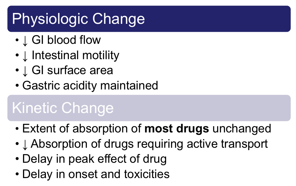 How does absorption of must drugs change in geriatrics?