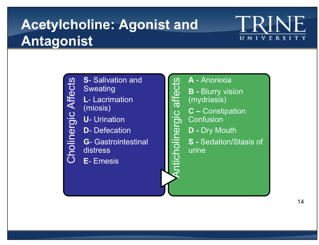 Cholinergic effects (SLUDGE)
