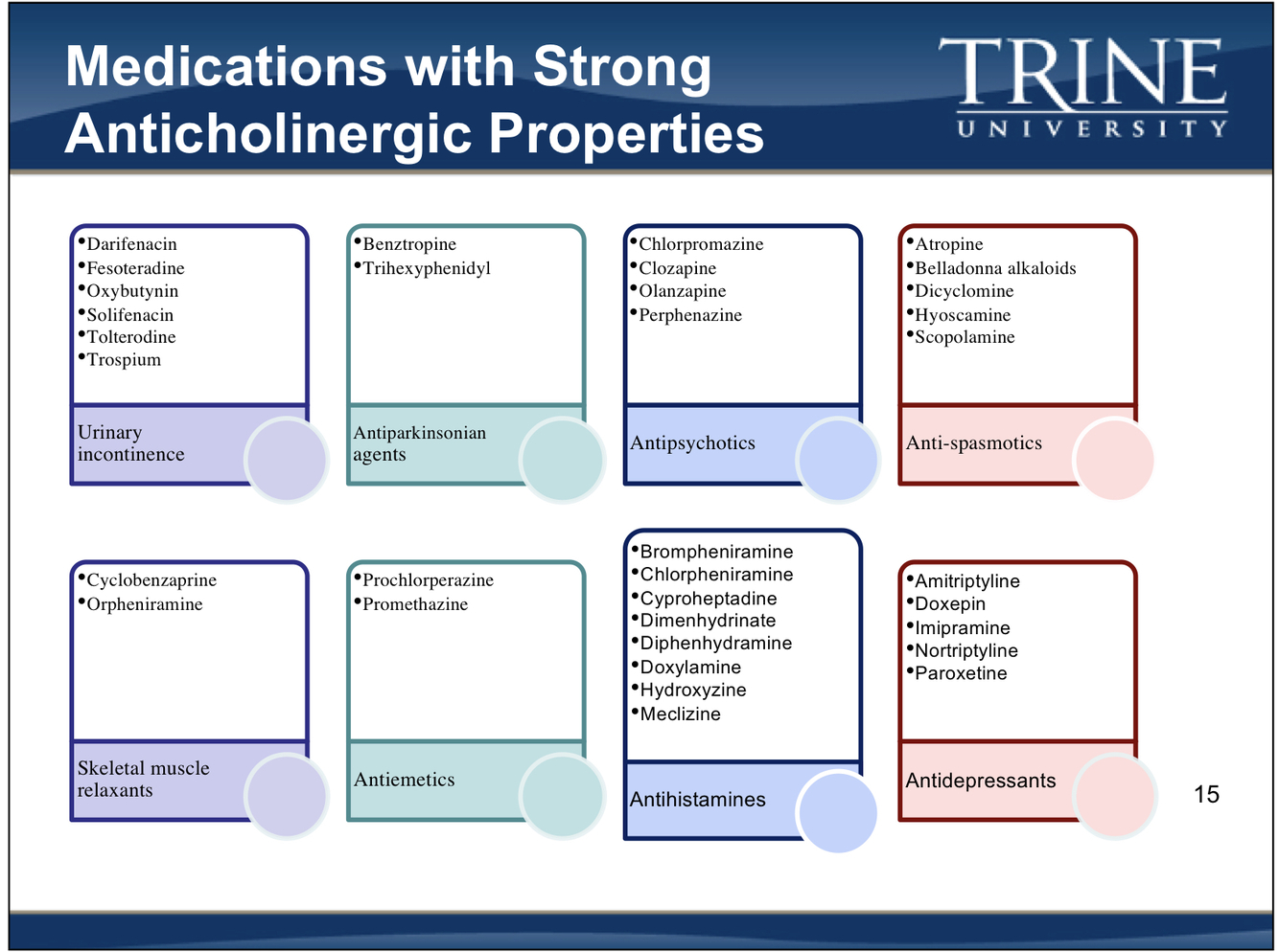 8 drug classes that have strong anticholinergic properties