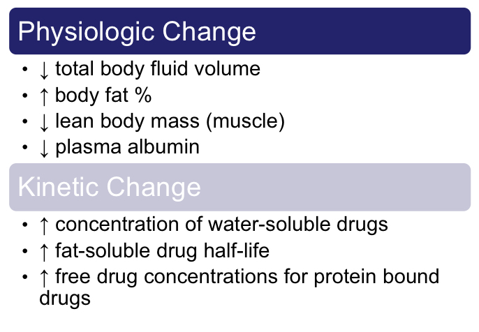 In general, what are the 2 main pharmacokinetic and Dynamic changes in the elderly?