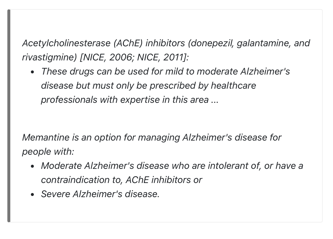 What is the drug management of Dementia?