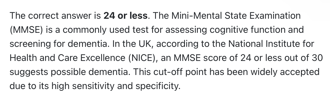 MMSE and dementia?