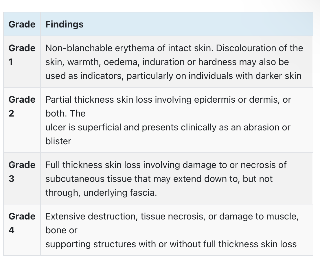 Pressure ulcer grades?