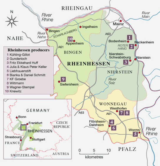 Nackenheim, Ingelheim, Oppenheim, Niertsein, Dienheim, Flörsheim-Dalsheim, Westhofen, Osthofen