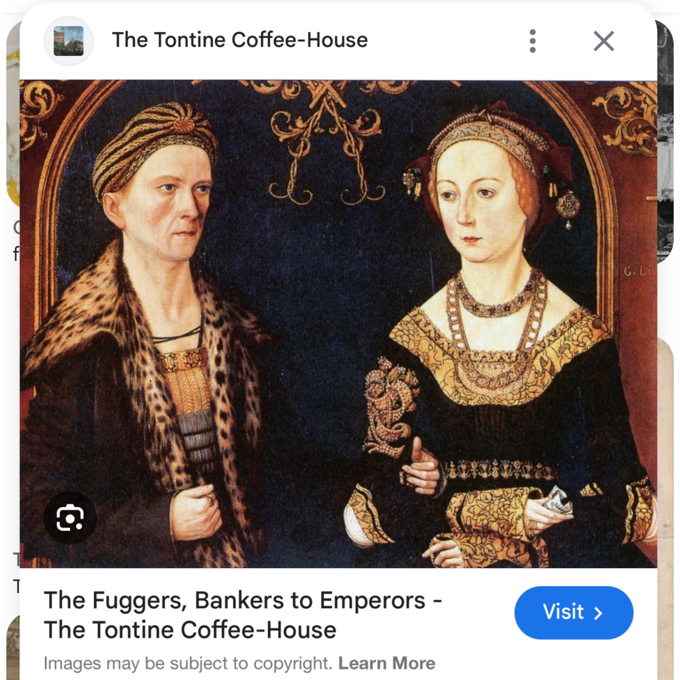 Under Jakob Fugger, the Fuggers became Europe’s wealthiest family and effectively controlled the finances of the Holy Roman Empire. In 1519, they famously funded the election of Charles V as emperor by providing massive bribes to the imperial electors—an early and dramatic example of financial influence in geopolitics. The family operated a network of branch banks in Venice, Rome, Antwerp, and Lisbon, and were involved in currency exchange, bills of exchange, mining, and international trade. Their wealth and influence reached from the Vatican to the Spanish and Portuguese empires.